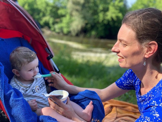 Hier, première sortie avec Angelo pour aller faire quelque chose de plaisant. C'est fabuleux ! Grâce au fait que nous avons drastiquement diminué les rations de lait donné par la sonde à Angelo, nous avons beaucoup plus de temps qu'avant et donc avons le temps de sortir prendre l'air et ainsi prendre le goûter en extérieur.