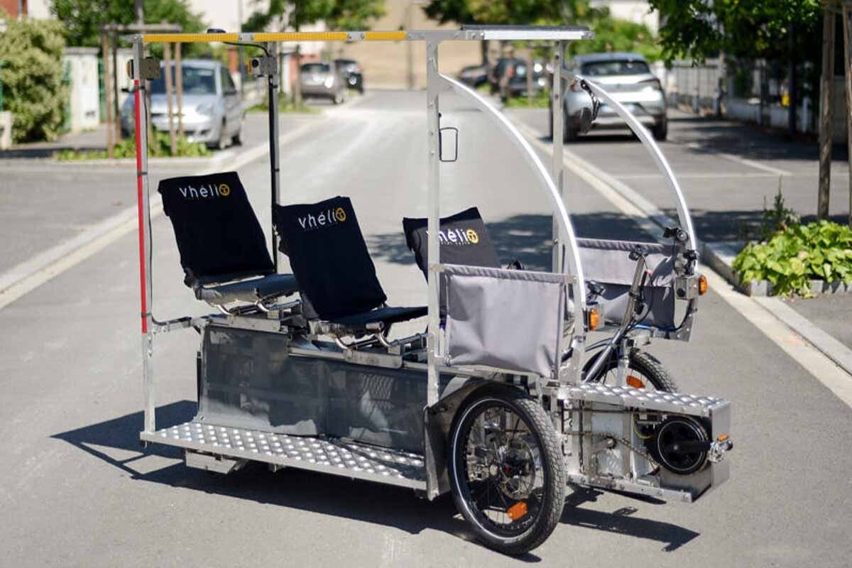 Conçu et porté par l’association Vélo Solaire Pour Tous, il permet de transporter plusieurs personnes et du matériel tout en restant adapté aux pistes cyclables et aux déplacements du quotidien.